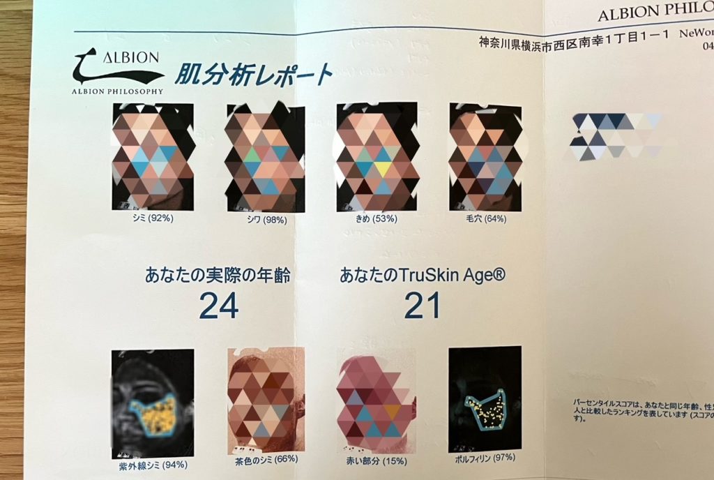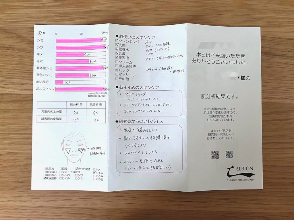 アルビオンフィロソフィの肌診断はとても人気で予約は困難ですが、無料でここまで詳しく肌分析をしていただけるので、大満足!