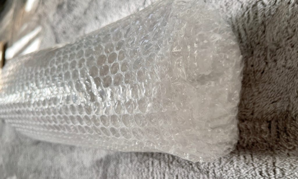 ちなみに届いた時はこんな感じで気泡緩衝材(プチプチ)でグルグル巻きにされて段ボールに入っていました。